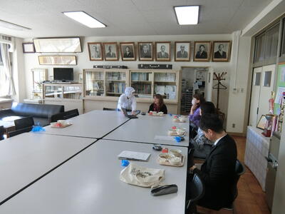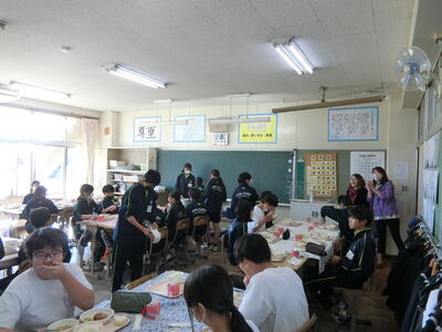 給食中、大瀬先生にクラスをまわってもらいました。生徒たちも大喜び!