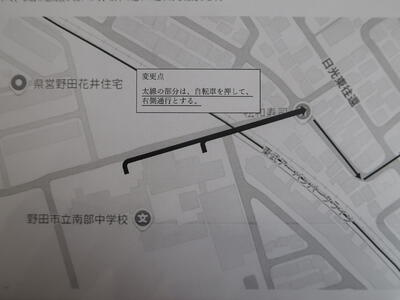主に山崎方面の生徒が関係する箇所です。踏切までは右側を歩いて通行していきます。自転車については、近年、法改正が進み、生徒も教師も一緒になって考えなければならないことです。ご家庭でも話題にしていただけると助かります。