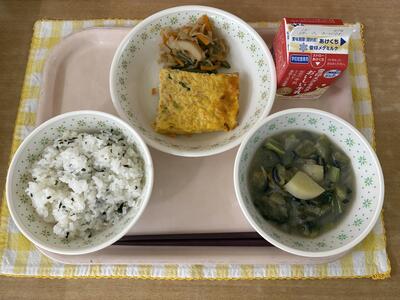 今日は「ししゃもの甘辛揚げ」「生揚げの味噌煮」「小松菜の梅和え」でした。南部中には梅がたくさんなっています。梅が入った料理は南部中らしいです。酸味が食べやすくおいしくいただきました。