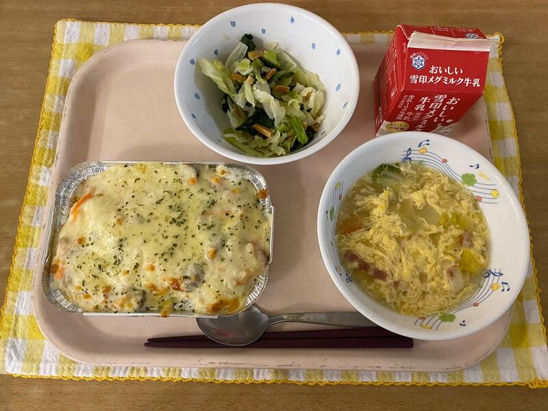 本日もおいしく完食しました。毎回のことですが、生徒の考えたメニューと聞くと、普段毎日おいしくいただいている給食が、さらにおいしく感じます。