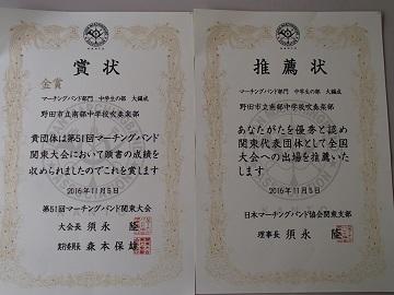 (M協関東大会 金賞の賞状と全国大会への推薦状)