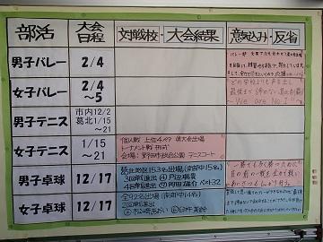 明後日より、冬休みが始まります。日頃から本校の部活動にご理解、ご協力をいただきありがとうございます。運動部活動は、夏休み以降2年生を中心とした新チームで活動しています。最近では、1年生大会や高校や各市連盟が主催する大会が行われています。冬休み中の大会等の予定をお知らせします。応援よろしくお願いします。