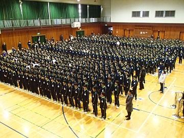 本日、体育館にて「冬季休業前集会」を行いました。内容は、①1年を振り返って ②全校合唱「ふるさと」 ③吹奏楽部全国大会報告 ④生徒指導主任の話 でした。