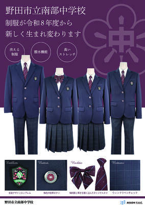 | 6 コート | ・スクールコート、P コート、ダッフルコート(色は、黒、紺、灰色で無地・単色) のいずれかから選択しましょう。) ※ 各部活動のウインドブレーカーを着用してもかまいません。 ・コートをかけるハンガーは各自で準備しましょう。(記名すること) |