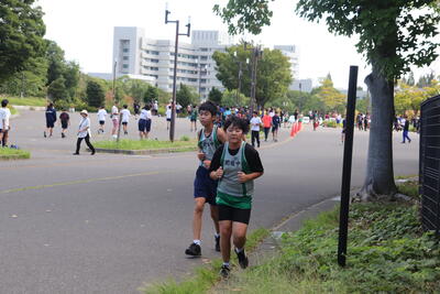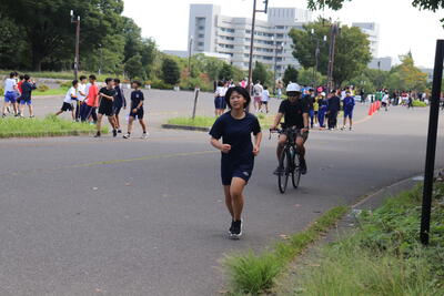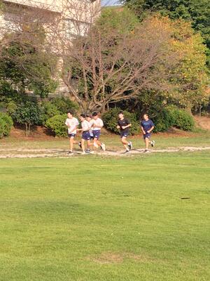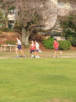 朝は、駅伝部の練習がありました。グループごとにペースを設定し走っています。