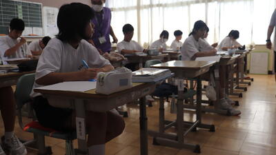 2年生は、国語で枕草子を学んでいました。ちょうど「冬はつとめて・・・」のところでした。