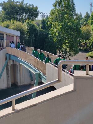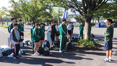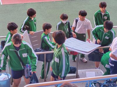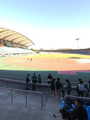 今日は、葛北駅伝大会です。選手達は、柏の葉公園陸上競技場に到着しました。
