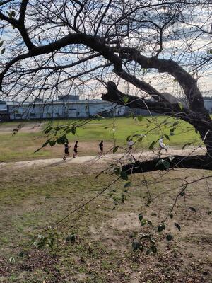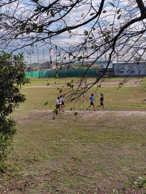 今朝は、遠くから駅伝部の練習を見ていました。がんばれ!