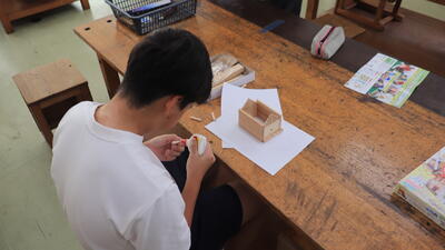 校舎を巡回していると、技術科室では、あおぞら学級が工作に励んでいました。