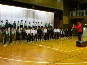 3月9日の卒業式に向けて、全校生徒で練習中です。