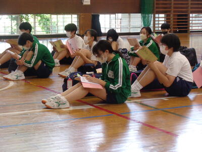 3年生は、明日から修学旅行です。体育館で事前集会を行いました。