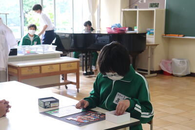 昼休みには、あおぞら学級に遊びに行く子もいます。奥でピアノを弾いていましたが、カメラを構えると照れくさそうに逃げてしまいました・・・