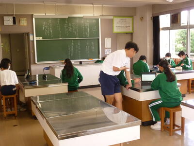1年生は、技術科で本棚を作成しています。丁寧に作業をしていました。2年生は家庭科で、調理実習を行っていました。できあがりが楽しみです。3年生は美術科で、色相環について学んでいました。絵の具を混ぜて、配色の構想を考えています。