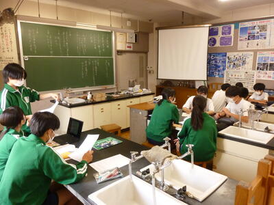 1年生は理科の学習で、燃焼時に発生する気体について調べていました。昨日もガスバーナーの使い方を学んでいました。