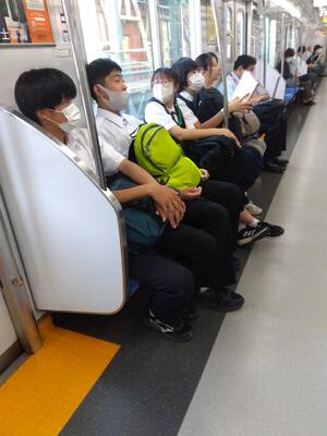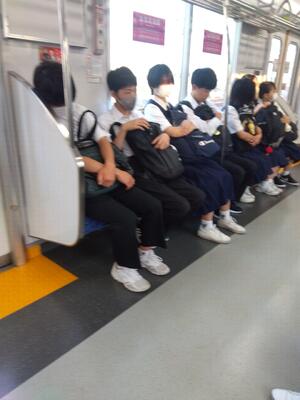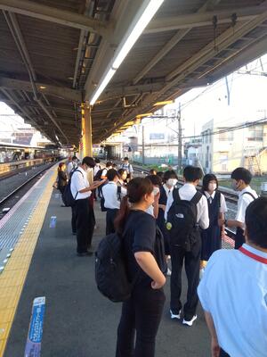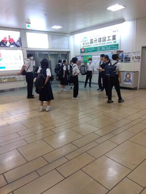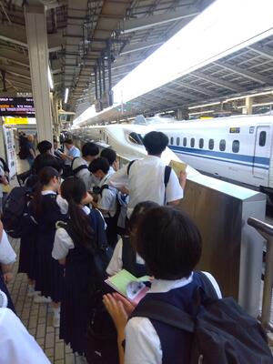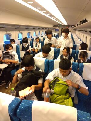 おはようございます。今日から3年生は修学旅行です。参加予定者全員元気に、そろいました。東武線に乗り、出発しています。
