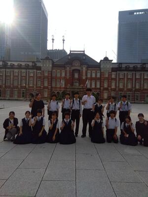 予定通り、東京駅を出発しました。東京駅を背景に記念写真も撮れました。