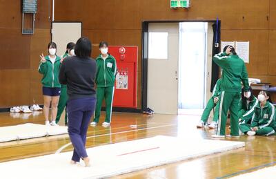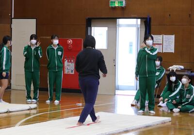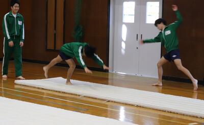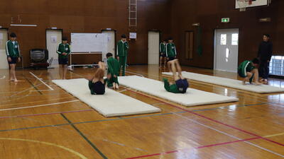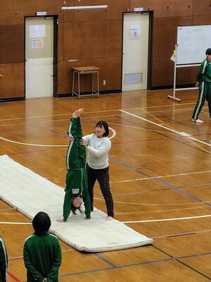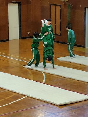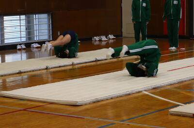 体育館では、3年生が倒立の練習をしていました。