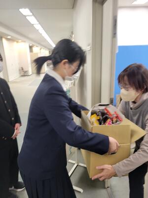 昨日夕方、3年生の代表が野田市役所内にある「野田市パーソナルサポートセンター」に食料品を届けてきました。「関中祭」で、皆さんに寄付のご協力をお願いしたものです。お陰様で、沢山の寄付が集まりました。これからも、フードロスについて考えていきます。