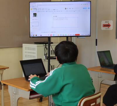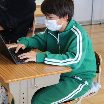 あおぞら学級では、パソコンを使って、授業参観の準備をしていました。