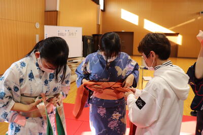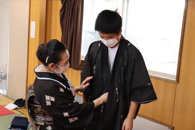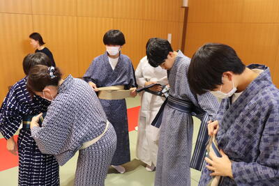 一昨日、2年生が「着付け教室」を行いました。現在は、着物や浴衣を着る機会が少なくなってきましたが、着てみてどうだったでしょうか。和装で京都市内を巡る修学旅行もいいですね。