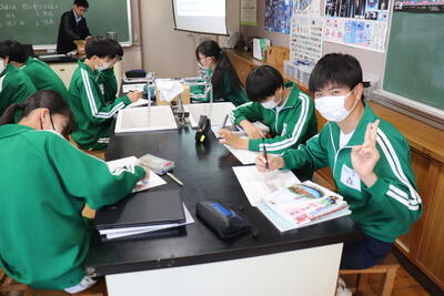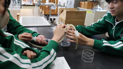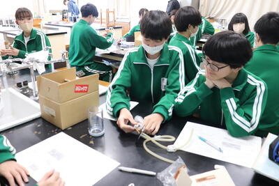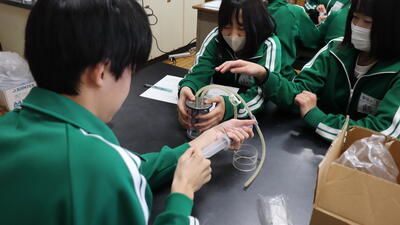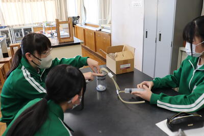 今日、2・3年生は関宿高校の先生による、出前授業を行い、大気圧について考える実験をしました。気圧を変化させることにより、マシュマロの大きさが変わったり、音が聞こえなくなったり、沸点が変わったり、と面白い実験でした。