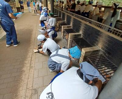 今日の5時間目に校庭で飯盒炊飯係が予行練習を行いました。初めての経験でしたが、業務員さんや先生方に指示をもらい、安全に十分注意しながら、ご飯を炊き上げることができました。できたご飯をその後食べながら、水加減などを確認し、当日みんながおいしくご飯を食べられるよう、準備をすることができました。当日が本当に楽しみです!