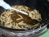みそかつのタレは、野田市の赤味噌で作りました。今日は、味噌の他に米(黒酢米)・小松菜が野田市産でした。