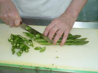 サラダには、今頃が旬のアスパラガスを使用しました。今日は、小松菜が野田市産でした。