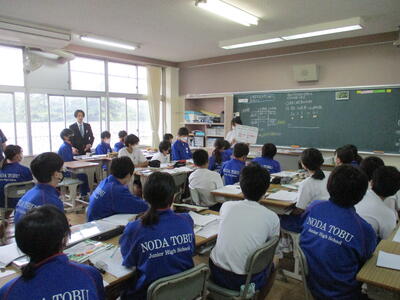 また、教育実習では精錬授業といって今までの成果を見るために多くの先生が実習生の授業を参観する時間があります。今日は2年1組でその精錬授業を行いました。一生懸命な実習生と、それを理解して良い授業を作ろうとする2年1組の生徒たちのあたたかい授業が見られました。