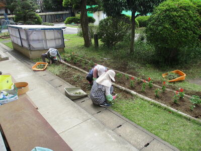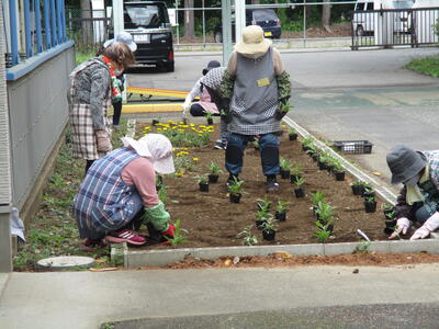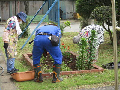 本日、東部公民館より学校にたくさんの夏花をいただきました。グリーンボランティアの方々が来てくださり、その花の苗を学校の花壇に綺麗に植えてくださいました。