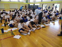 学校では市内大会に参加しない生徒たちが自主学習に取り組んでいます。少ない人数でも互いに声をかけあい、静かに集中した取り組みができております。