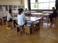 <地域の方も作業のお手本> <あと一息で完了> <終わりの会をリードする中学生>