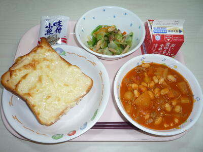 令和6年6月7日(金)の給食 投稿日時 : 2024/06/11 東部中学校管理者 カテゴリ: 献立: チーズケーキ風トースト、牛乳、キャベツとしめじのサラダ、ポークビーンズ、小魚 歯と口の健康週間4日目の給食で、チーズ・大豆・小魚などのカルシウムを多く含む食べ物を献立に取り入れました。ポークビーンズは、北海道産の大豆を使用して作りました。 0 {{options.likeCount}} {{options.likeCount}}