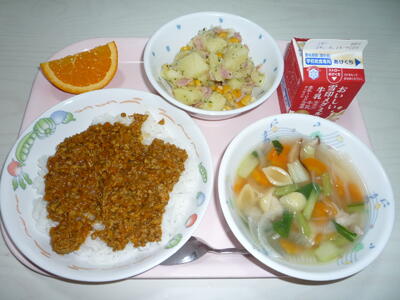 令和6年6月3日(月)の給食 投稿日時 : 2024/06/11 東部中学校管理者 カテゴリ: 献立: ご飯、牛乳、ドライカレー、ジャーマンポテト、マカロニスープ、オレンジ 今日は、米(黒酢米)・小松菜が野田市産でした。 0 {{options.likeCount}} {{options.likeCount}}