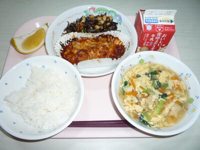 歯と口の健康週間3日目の給食でした。この期間は、かみごたえのある食べ物やカルシウムを多く含んだ食べ物を給食に取り入れています。今日はかみごたえのある食べ物として、いわしと根菜を、カルシウムを多く含む食べ物として、ひじきと生揚げを使用しました。いわしの甘露煮は、千葉県産のいわしを骨ごと砂糖やしょうゆなどの調味料で煮ました。今日は、米(黒酢米)・小松菜・味噌が野田市産でした。