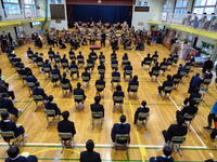 本公演では、J.ストラウスの「ラデツキー行進曲」、モーツアルトの「アイネ・クライネ・ナハトムジーク」、チャイコフスキーの「くるみ割り人形」、ブラームスの「ハンガリー舞曲」、日本古来の音楽(「あんたがったどこさ」「ソーラン節」「炭坑節」「八木節」など)を素材とした演奏が行われました。また、演奏の合間に、楽器の演奏体験や指揮者体験などがあり楽しさの中にも緊張感があり、笑顔と大きな拍手の公演となりました。