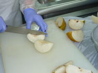 ひまわり学級は今日の家庭科で調理実習を行いました。メニューはスイートポテトです。できあがった料理は給食の時間に自分たちで食べるので、生徒たちはやる気満々で取り組んでいました。いざ始まってみると料理はやっぱり難しい。細かなことにまで注意しなくてはいけなくて悪戦苦闘しましたが、それでも「料理の楽しさ」を存分に経験できた授業の後、みんな充実した表情をしていました。できあがったスイートポテトはお芋本来の甘さが口いっぱいに広がり、とっても美味しかったようです!