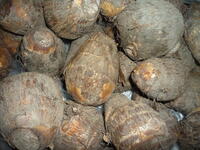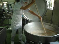 芋煮汁は、千葉県産の里芋を使用しました。ヌルヌルして扱いづらい里芋ですが、調理員さんが一つずつ丁寧に皮をむき、食べやすい大きさにカットしてくれました。今日は、米(黒酢米)が野田市産でした。