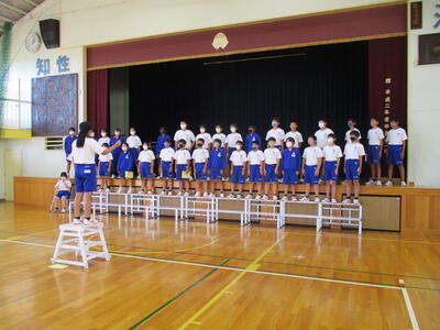 本日、夏休み前最終日を迎え、いよいよ42日間の長期夏休みに突入します。これまでの4ヶ月間を振り返りつつ、良い夏休みを過ごせるよう、全校で集会を行いました。