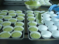 今日のカステラは「ちば東葛農業協同組合」さんから寄付していただいた米粉と、野田市産の卵で作りました。今日は卵の他に、小松菜が野田市産でした。