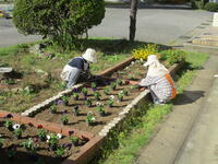 本日、東部地区の婦人会の方々を中心に活動されているグリーンボランティアで、本校の花壇にパンジーを植えてくださいました。このパンジーは寒い冬の間も花を咲かせ続け、春の暖かさを感じる3月から4月まで学校を彩ってくれます。