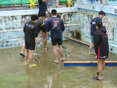 消防本部の方々がプール清掃を行ってくれました。