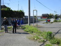 また、地震に限らず、緊急の事態に下校をする際に、必要に応じて地区ごとに集団下校を実施する場合があります。訓練後に、近隣に住む者どうし地区ごとに集まり、顔合わせと、集団下校時の注意点について説明をしました。