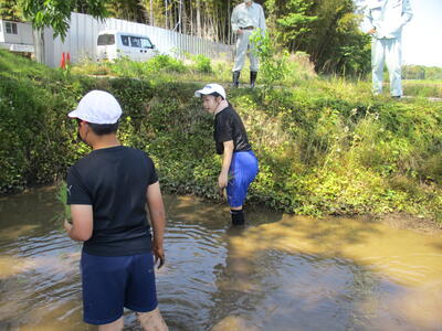 東部中学校1年生、東部小学校及び柳沢小学校5年生と合同で田植え体験活動を実施しました。野田市長を始め、多くの地域の方々に応援いただき、素晴らしい天気の中、精一杯田植えを行うことができました。中学生は小学校5年生の時に一度経験をしています。そのため、今回は先輩として初めて参加する小学生の中に交ざって指示を出したり誘導したりと、リーダーシップをとる勉強を含めた活動でした。大変多くのことを学んだ一日となりました。