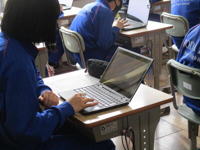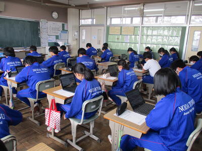 本日、1年生がちばっ子学びの未来デザインシートの試験に挑みました。一人一台端末を活用し、Web上で問題に答えていく方式で、4月に3年生が受けた全国学力学習状況調査の英語科でも実施されたものです。現中学1年生は端末の扱いにも慣れてきており、初めての端末で受ける試験でしたが、あっという間に操作を理解し、問題に取り組むことができました。