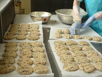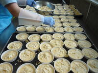 スパゲッティは、ご飯やパンと同じ主食ですが、給食では食器や食缶の関係もあり、スパゲッティだけで中学生に必要な主食の量を出すことができません。そこで今日は、手作りのおからマフィンを一緒に出しました。おからは、豆腐を作るときにできる「大豆のしぼりかす」で、食物繊維やカルシウムを多く含みます。おからは、野田市のお豆腐屋さんから納めていただきました。今日は、卵が野田市産でした。