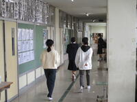 入試が今日ではない生徒たちは、登校し教室で自習を行うか自宅学習とするかを選択しています。自宅学習を選択した生徒も朝オンラインで学級会に参加しています。