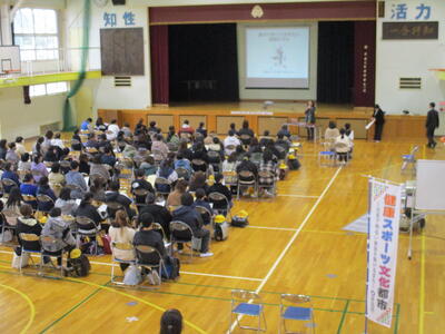 体育館では保護者の方々に東部中の説明会を行いました。行事の説明は代表生徒が行いました。東部中の楽しさは伝わってでしょうか?