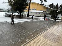 東部中敷地内は雪かきを行い、多少通行しやすくはなりましたが、それでも雪は残っています。通学路はまだまだ多くの雪が残っていると思われます。登校時は十分気をつけて慌てず登校してください。また、ご家庭の判断で登校を遅らせてもかまいません。
