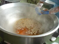 肉みそは、野田市産の赤味噌で作りました。ご飯にのせて、いただきました。今日は味噌の他に、米(黒酢米)・小松菜・卵が野田市産でした。